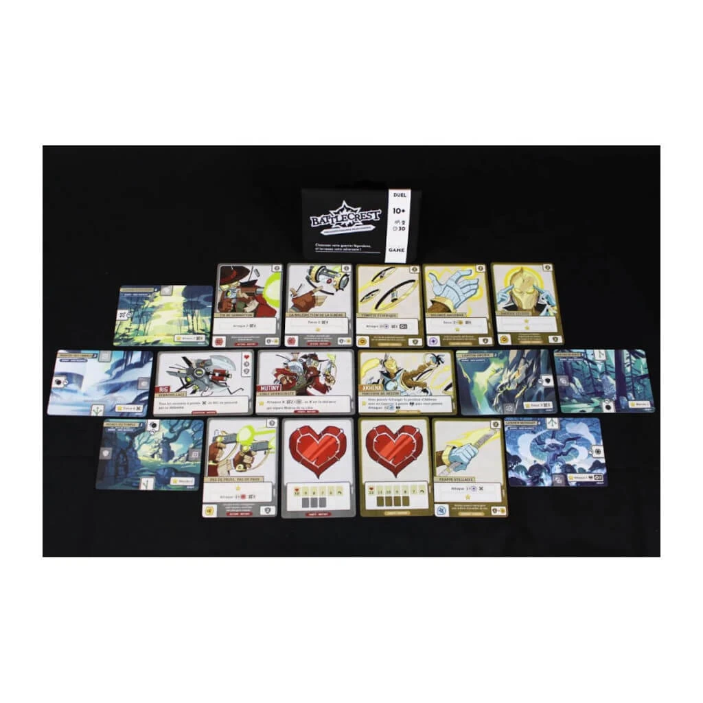 Bienvenue dans l’arène de Battlecrest ! Dans ce Microgame très tactique deux joueurs vont s’affronter, activer des capacités et tenter de s’éliminer.