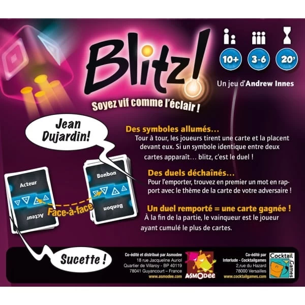 Dans Blitz déjà vous avez trois paquets de cartes aux dos colorés différemment. On en choisit un pour la partie.