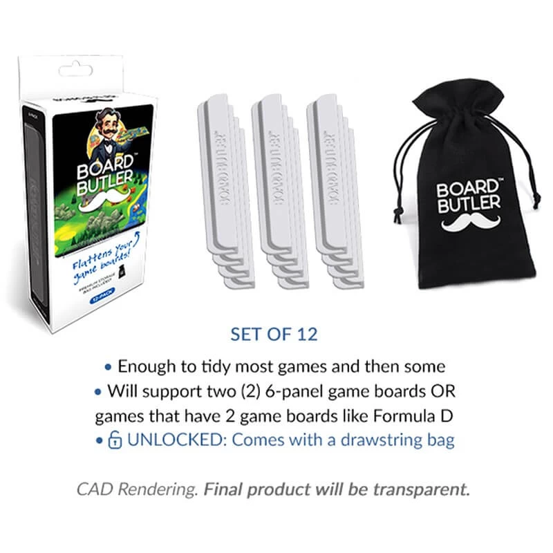 Ne s’accroche pas, ne s’agrippe pas et n’use pas votre plateau de jeu comme le font les pièces imprimées en 3D et les pinces à reliure. Les produits plus petits ne maintiennent tout simplement pas les plateaux à plat comme le fait Board Butler™.