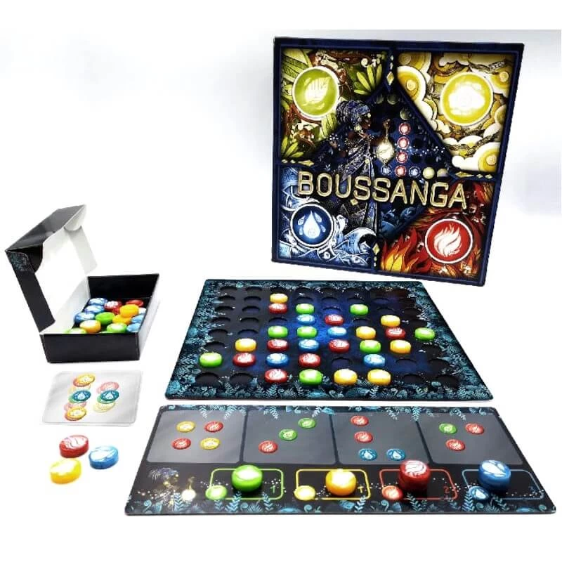 Boussanga est un jeu de stratégie dans lequel chaque joueur doit placer des pions selon le schéma d’une carte combinaison et tenter d’aligner au moins 4 pions d’une même couleur pour marquer des points.