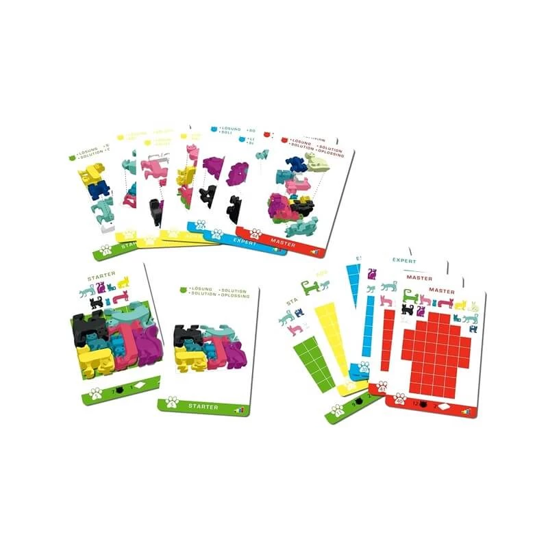 12 adorables figurines à manipuler, à tourner dans tous les sens et éventuellement à empiler sur plusieurs niveaux pour résoudre 44 défis de difficulté croissante.