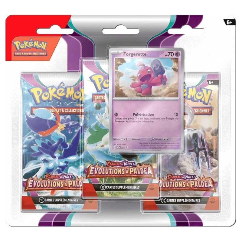 Le Tripack EV2 Ecarlate et Violet Évolutions à Paldéa du JCC Pokémon contient :