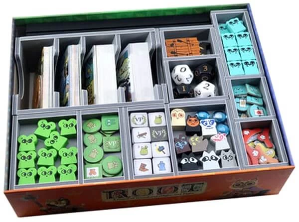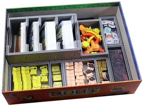 Insert conçu pour un jeu dont les dimensions extérieures de la boîte sont de 22,6 x 29,0 x 7,4 cm. Veuillez faire preuve d’une attention particulière car l’insert n’est pas compatible avec l’édition française de Matagot, dont les dimensions de la boîte sont de 36,8 x 29,8 x 10,8 cm.