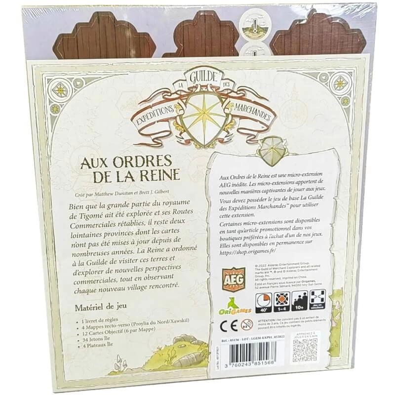 Aux Ordres de le Reine est une micro-extension. Vous devez posséder le jeu de base La Guilde des Expéditions Marchandes pour utiliser cette extension.