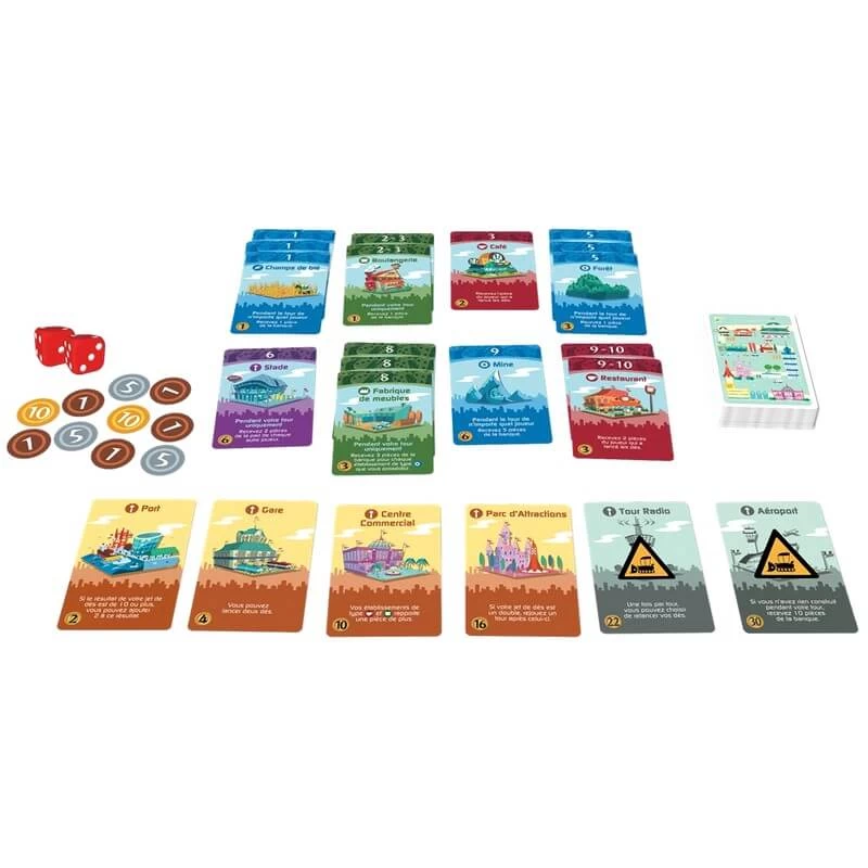 Minivilles est un jeu rapide pour 2 à 5 joueurs. Chaque joueur veut développer la ville selon ses propres termes afin d’achever tous les monuments en construction plus rapidement que ses rivaux.