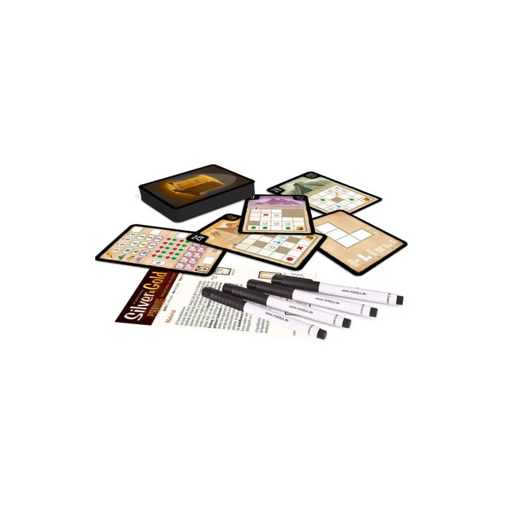 Si vous recouvrez le tombeau d’un plateau pyramidal, mettez ce plateau de côté et prenez un nouveau plateau parmi les quatre proposés ou dans la pioche. Lorsque vous avez terminé votre deuxième, quatrième ou sixième pyramide de la même couleur (la pioche comprend trois couleurs), vous obtenez le bonus de couleur le plus élevé possible.