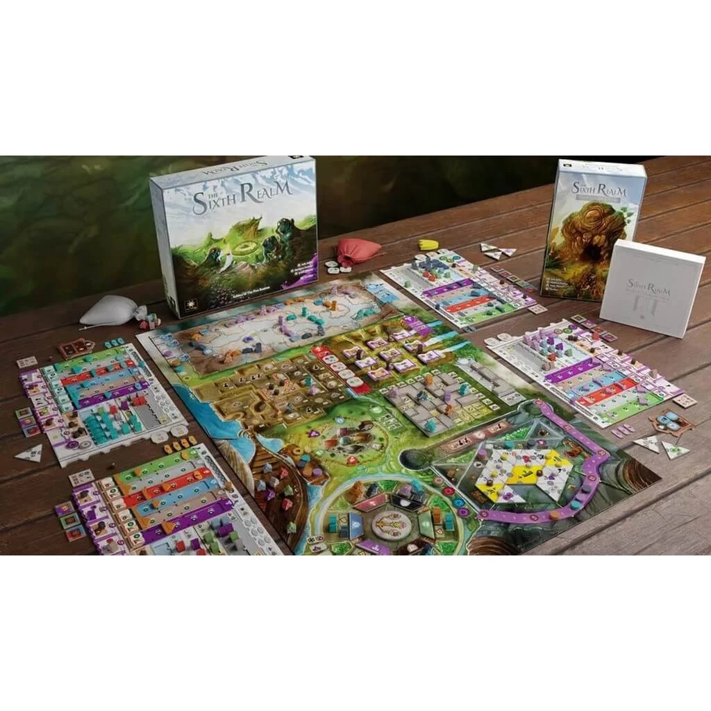 The Sixth Realm est un jeu eurogame expert rempli à ras bord de combos, de bonus, de construction de moteurs et d’interactions. Les mécaniques d’évaluation et de sélection d’actions font qu’aucune partie ne se déroulera de la même manière. Vous devez soigneusement équilibrer la planification stratégique à long terme, les ajustements tactiques à court terme et les intentions de vos adversaires pour vous faire un nom alors que vous retournez sur la terre de vos ancêtres.