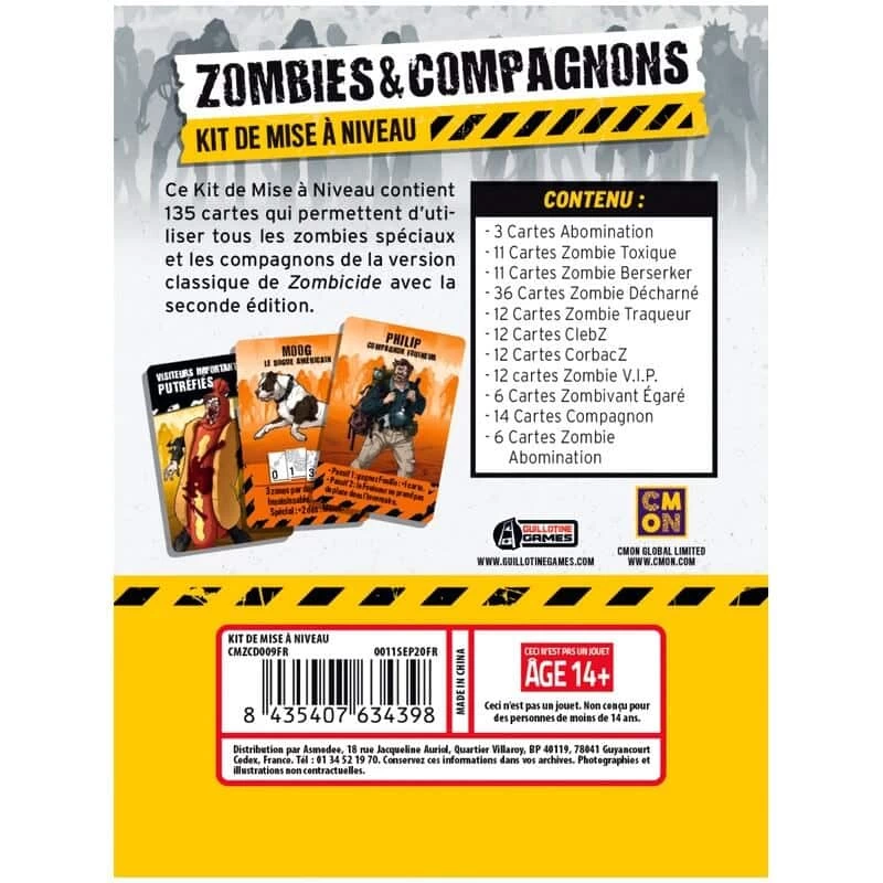 Ce kit de mise à niveau contient 135 cartes qui permettent d’utiliser tous les zombies spéciaux et les compagnons de la version classique de Zombicide avec la seconde édition.